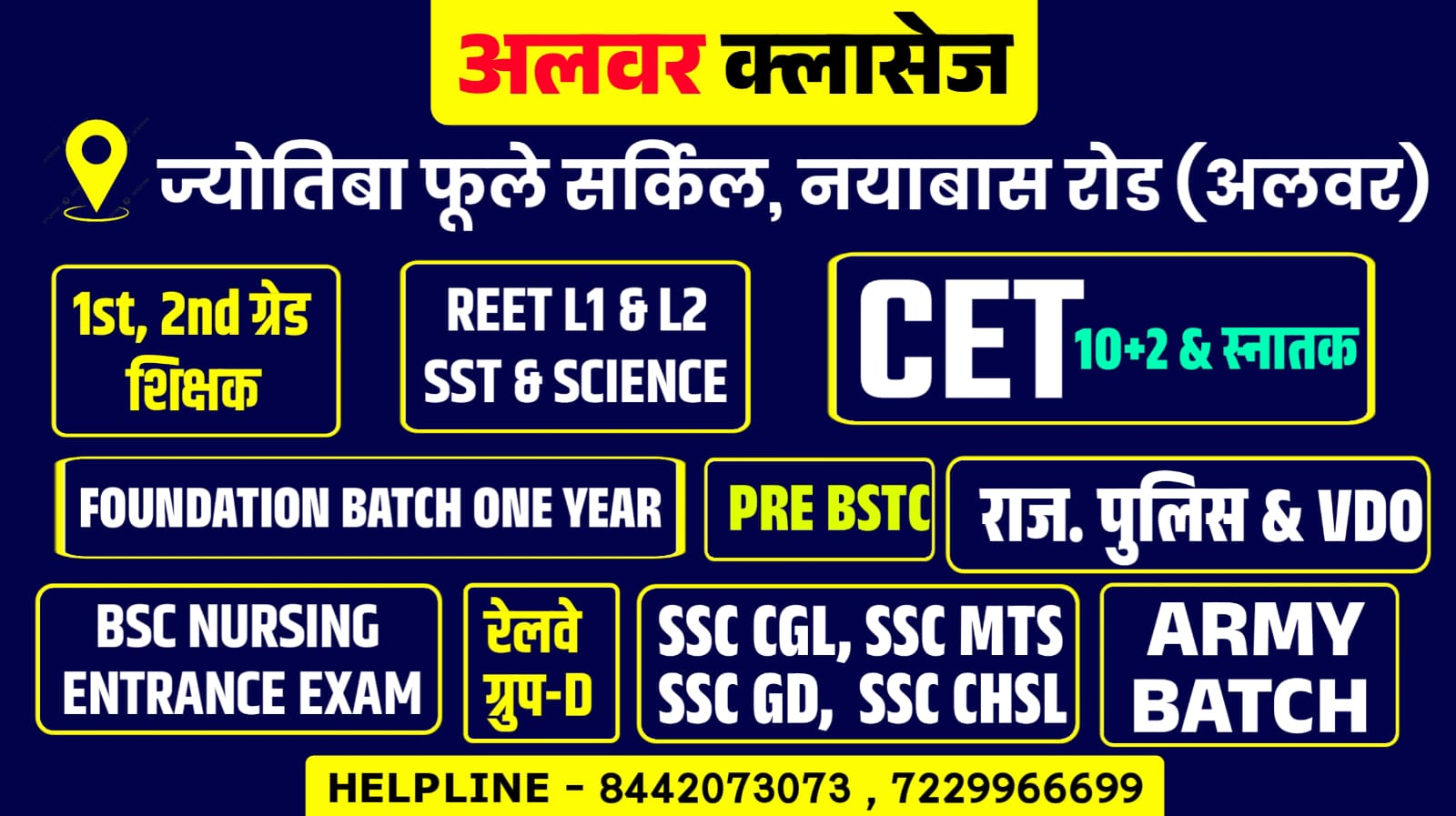 Join Alwar Classes — Rajasthan’s premier institute for competitive exam preparation. Under the expert mentorship of Mukesh Ji, we offer result-oriented coaching for 1st & 2nd Grade Teachers, REET (L1, L2 SST & Science), CET, Rajasthan Police, VDO, SSC (CGL, CHSL, GD), Army, and Railway to crack government jobs with confidence.