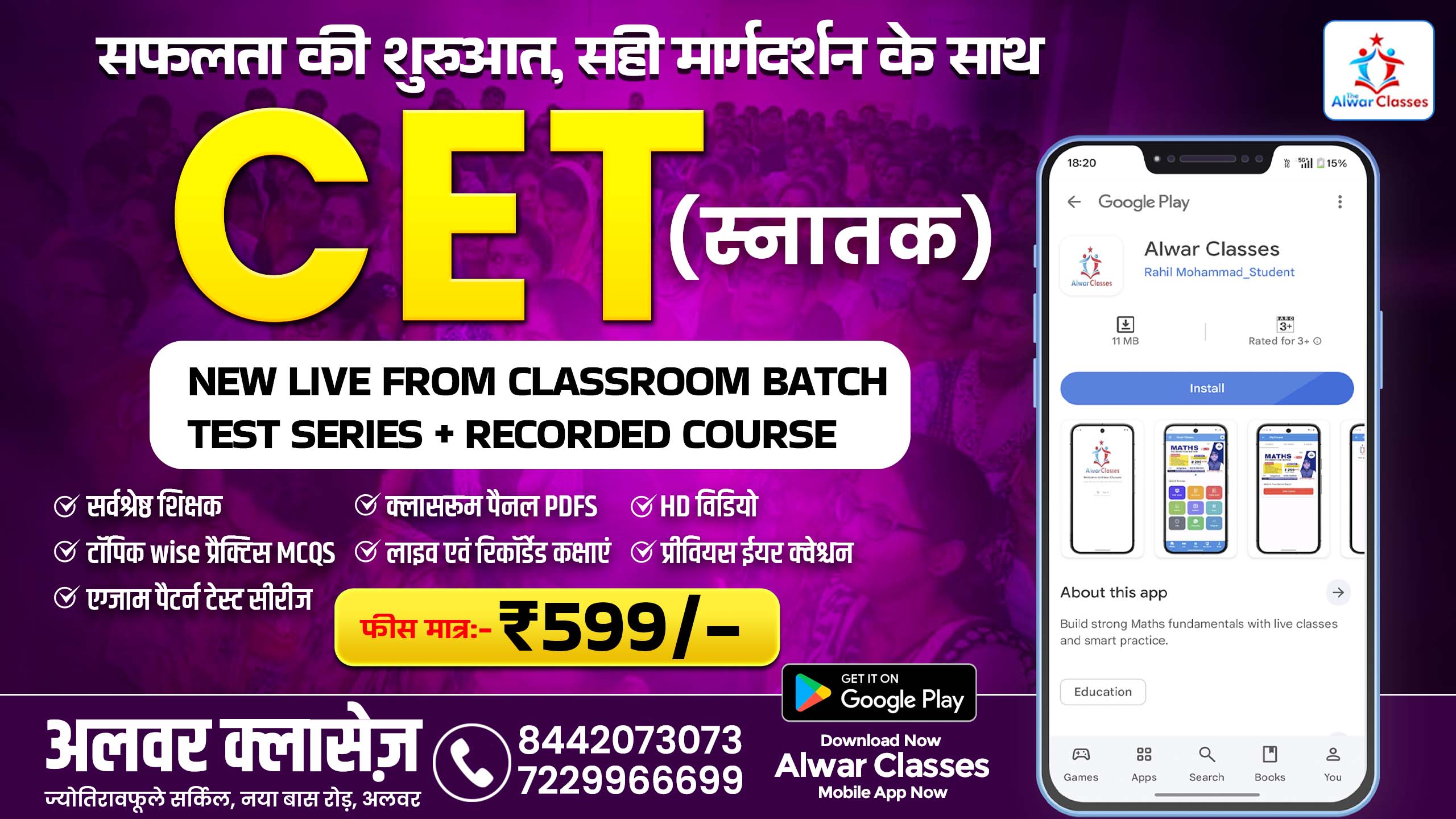 Join Alwar Classes — Rajasthan’s premier institute for competitive exam preparation. Under the expert mentorship of Mukesh Ji, we offer result-oriented coaching for 1st & 2nd Grade Teachers, REET (L1, L2 SST & Science), CET, Rajasthan Police, VDO, SSC (CGL, CHSL, GD), Army, and Railway to crack government jobs with confidence.